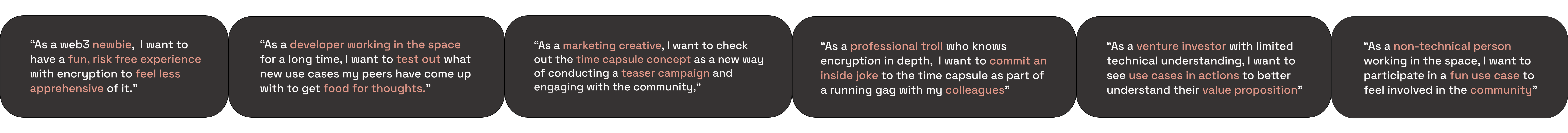 Our users are people who work in the space and understand the lingo already, know how to use a wallet, and will have an appreciation of the smart encryption protocol used to facilitate it.